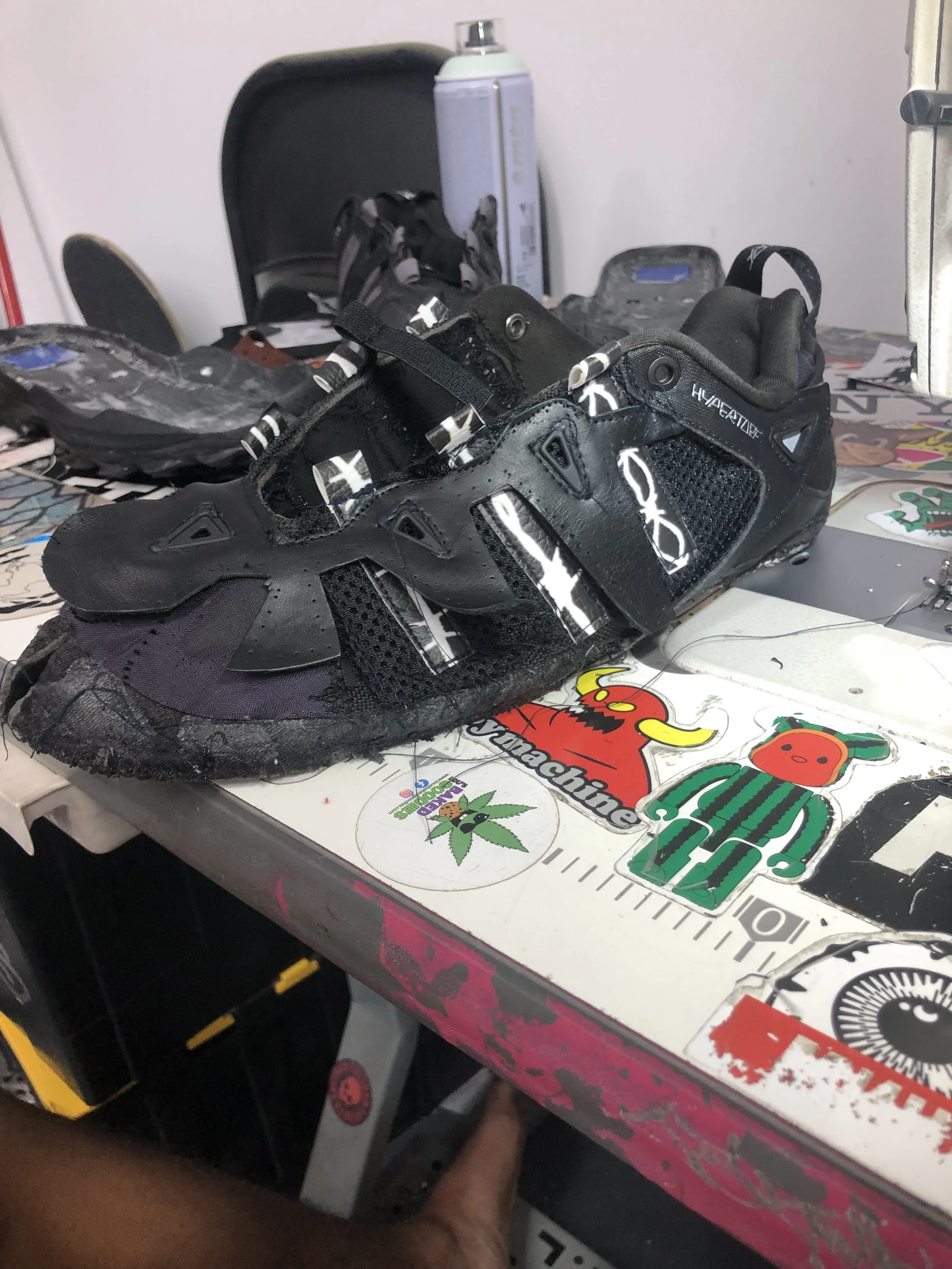 This is the first Shoe I made without a rubber outsole. This proved to be challenging as the lasting process required heat when gluing the outsole which nearly melted the “adiprene” outsole, it certainly warped the shape. This was inspired by the trendy bulky shoe concept that has taken over fashion. On Madonna's Self titled album cover, and Madvillains album cover for Madvillainy, they enhance a black and white artwork with a tiny dash of orange. I borrowed this trick for this sneaker and tossed a tiny hint of orange on the mudguard on the toe box.