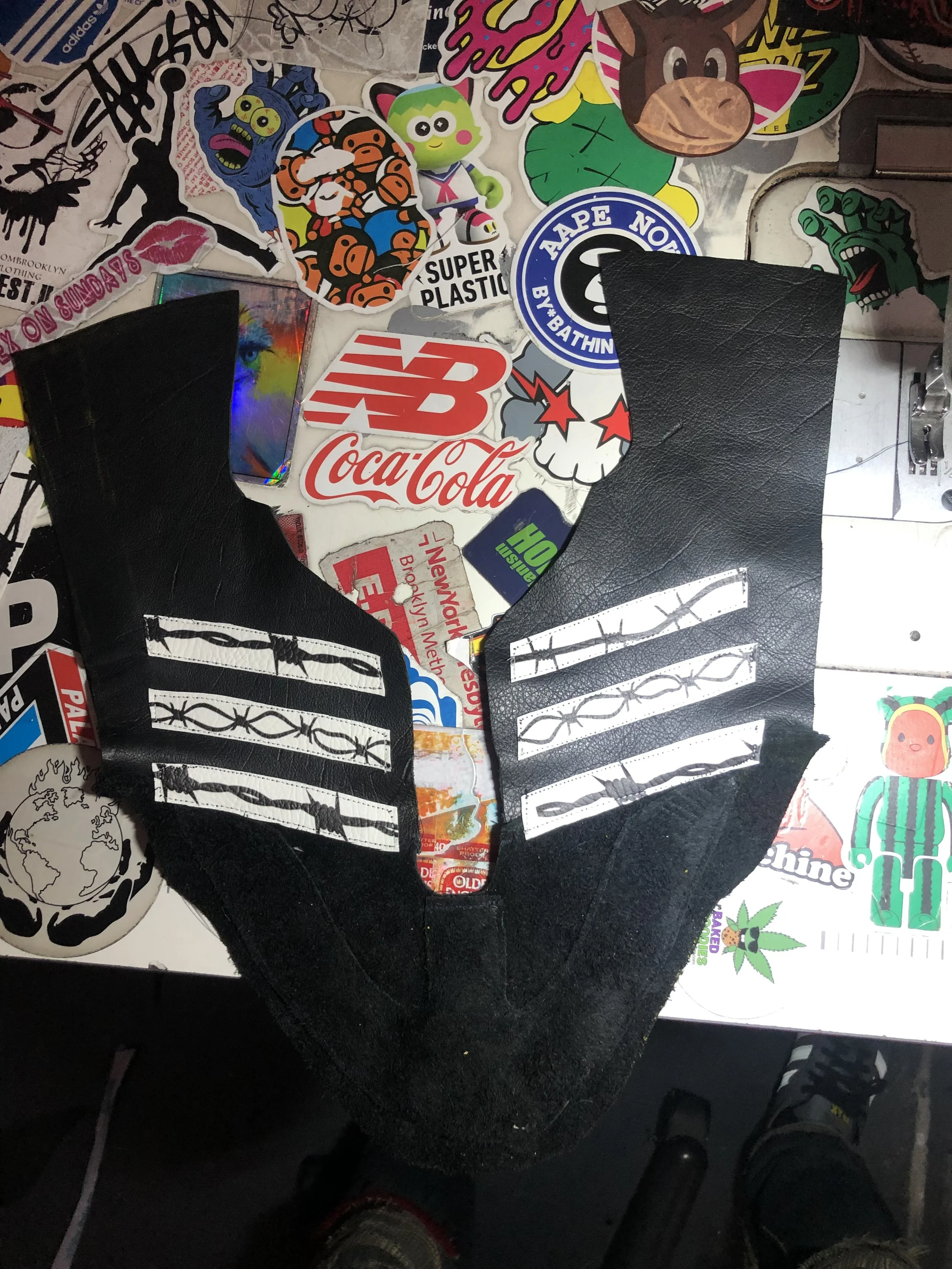 Seeing customized sambas on instagram is what made me realize I had the foundational skills to do the same thing. As a result, this was the sneaker I used to take apart, practice, and understand the anatomy of a sneaker leading my first footwear designs to be sambas with altered details. All of these shoes were given barbed wire stripes as well as a complete change of materials from the toe box until just before the heel. The thermochromic pair is my favorite, they change colors in reaction to heat from brown to pink and from pink to yellow.